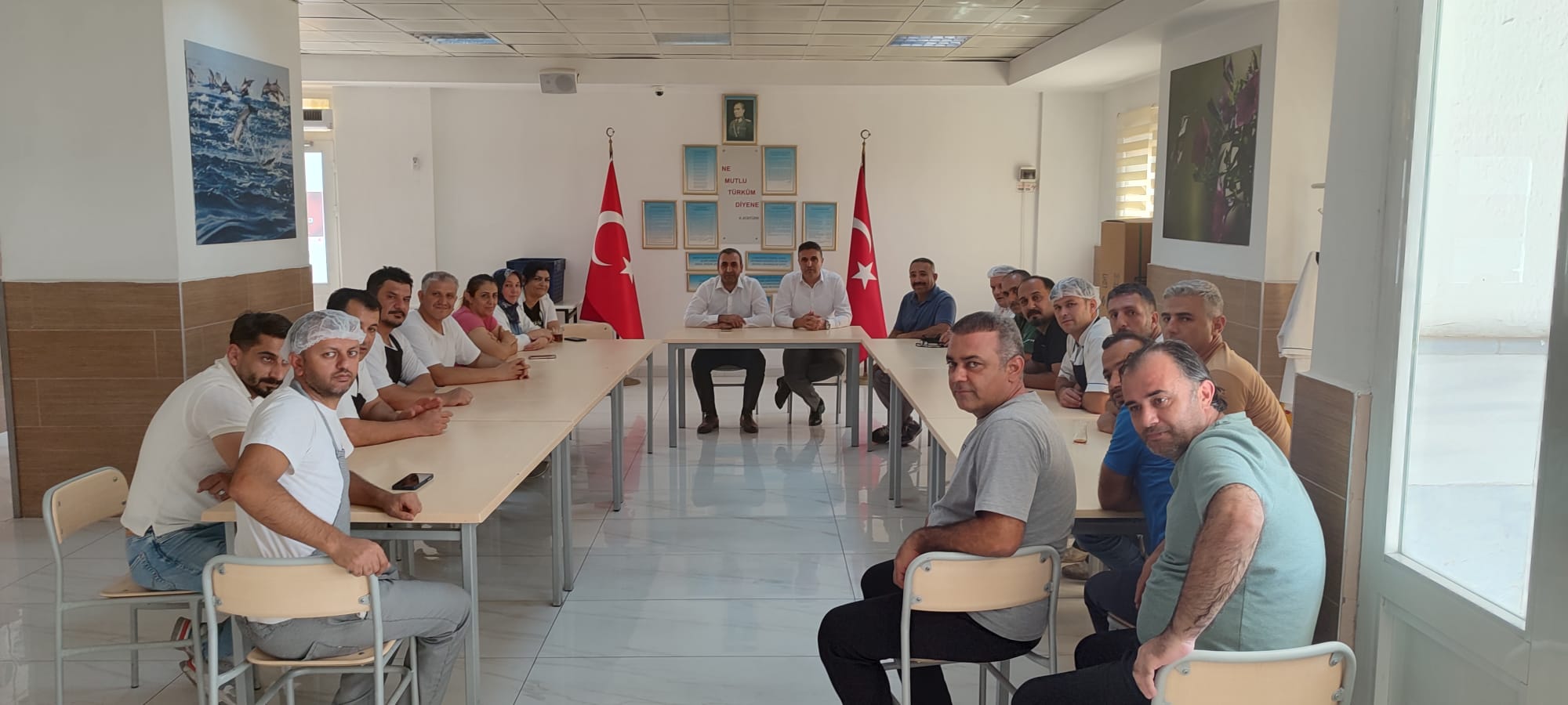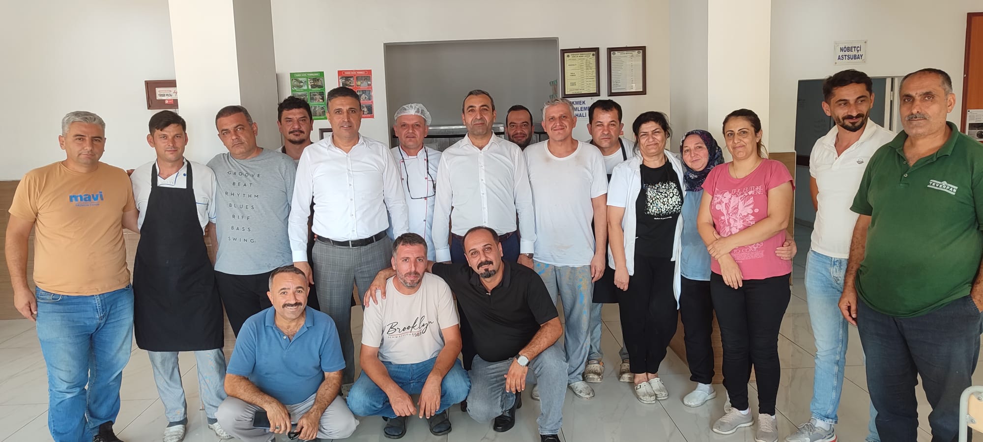 Sendikamızın Adana Şubesi Yönetim Kurulu Üyeleri, Mersin Karargah Destek Kıtalar Komutanlığı Aşhane Bölümünde çalışan üyelerimizi ziyaret ederek, imza altına alınan 30. Dönem Toplu İş Sözleşmemiz ile ilgili bilgilendirmelerde bulundu.