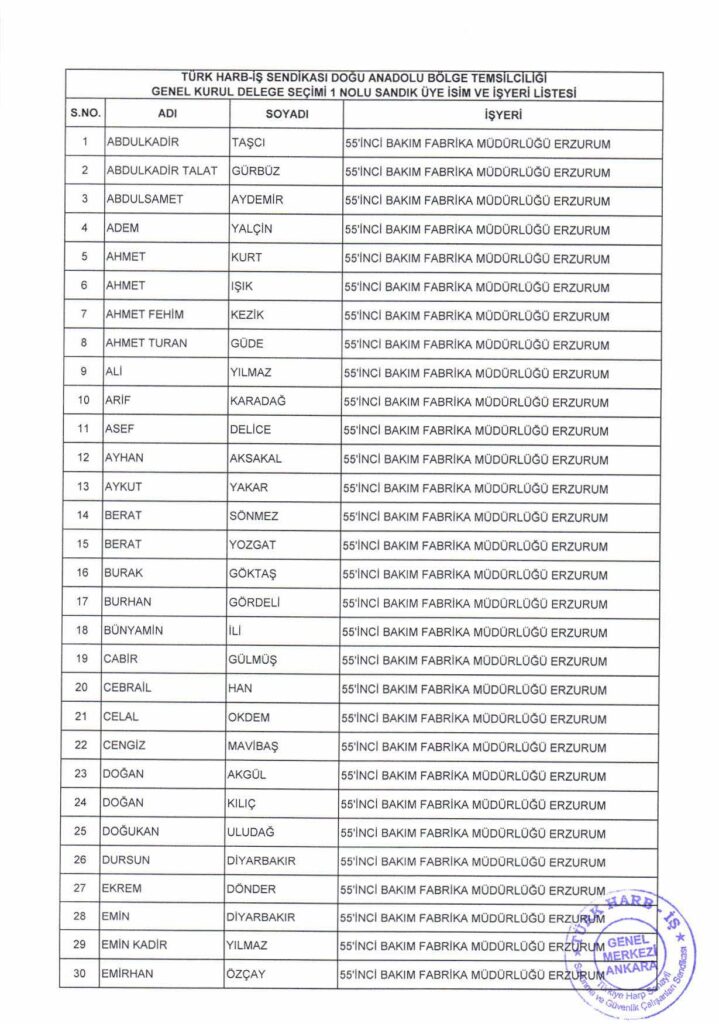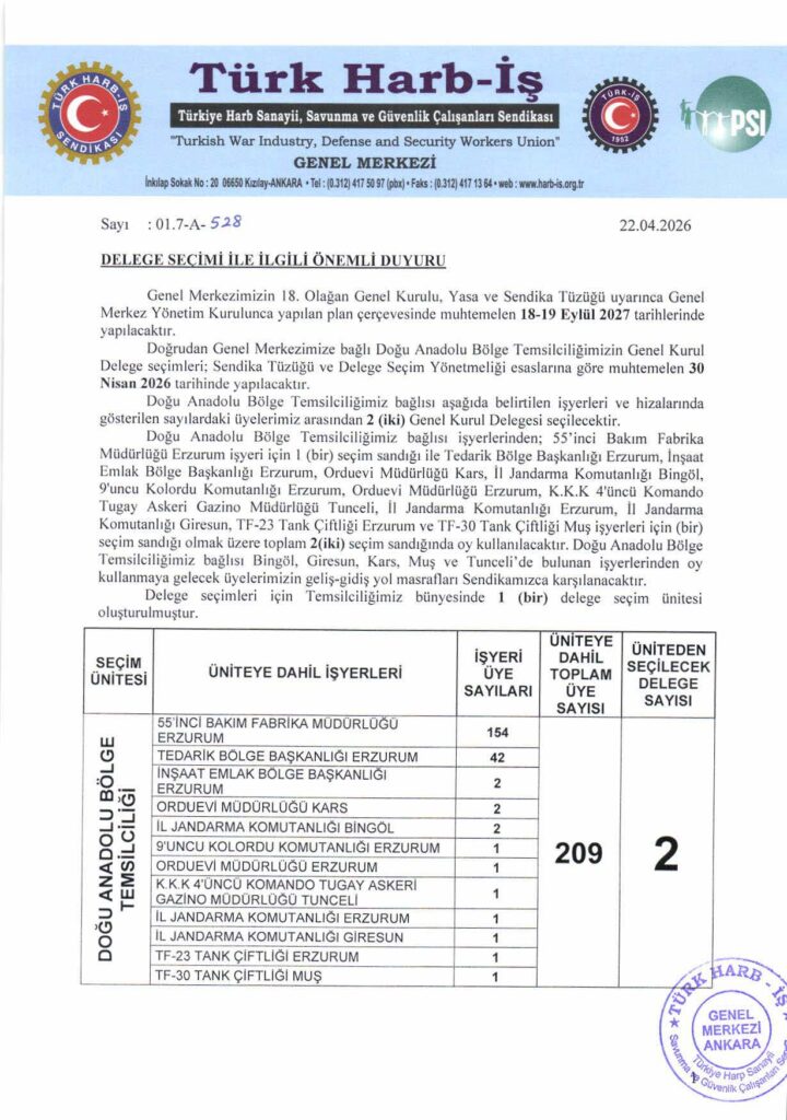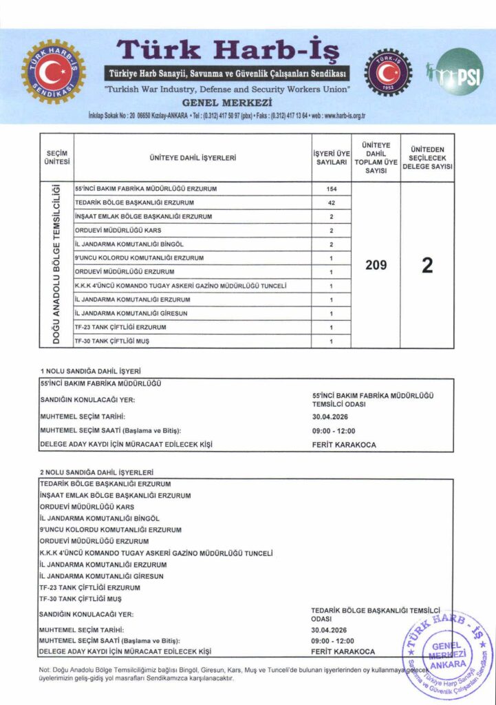 DOĞU ANADOLU BÖLGE TEMSİLCİLİĞİ GENEL KURUL DELEGE SEÇİM DUYURUSU İLANI