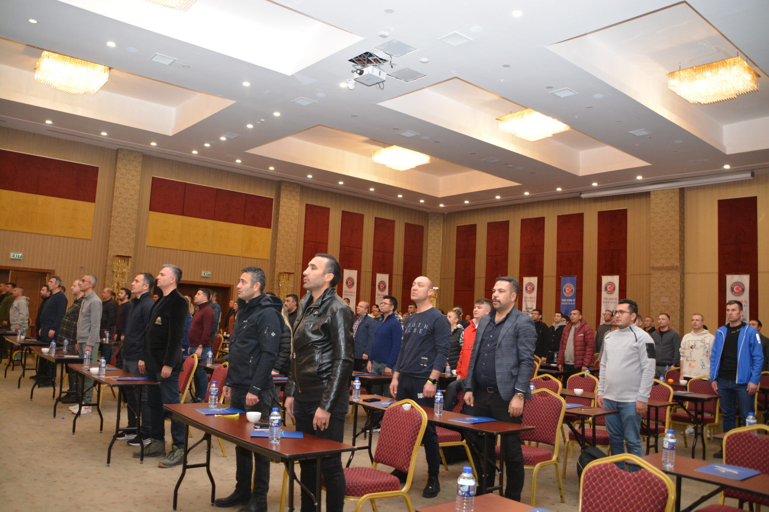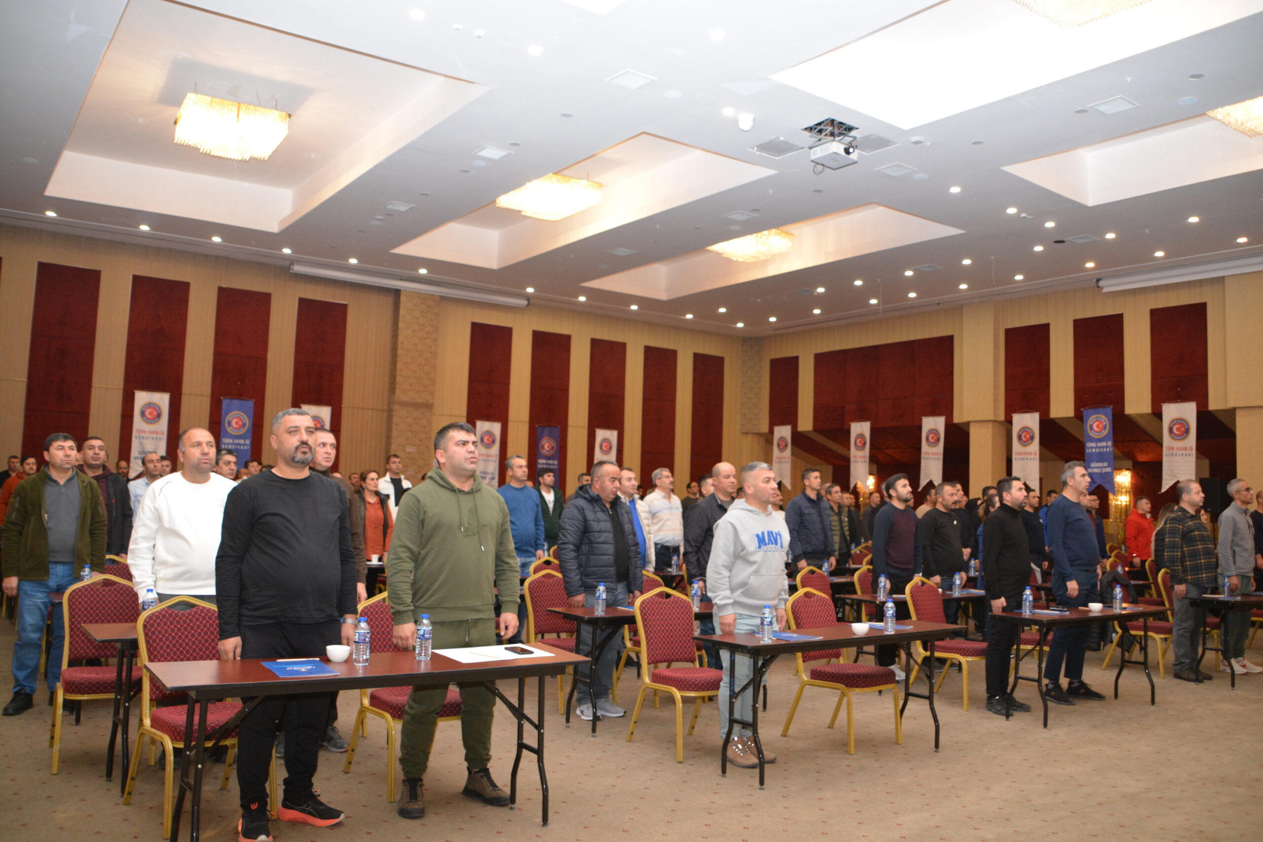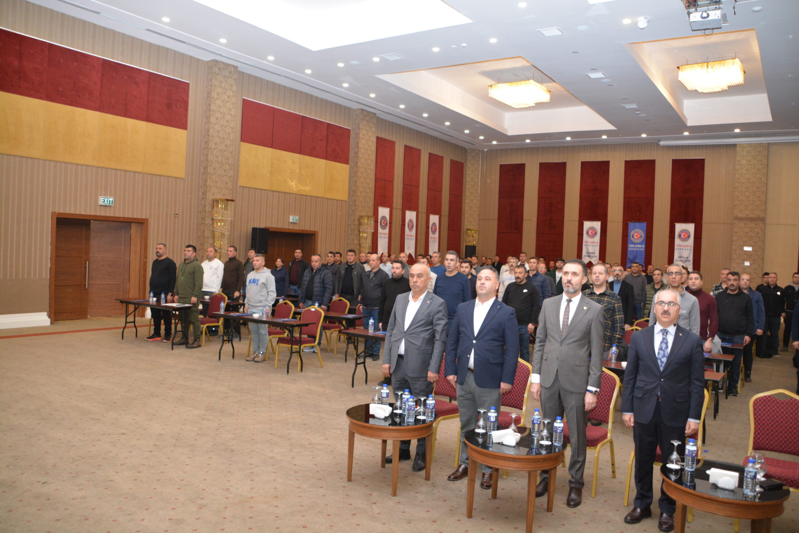 Gerçekleştirdiğimiz eğitime; Genel Mali Sekreterimiz Korkut Gökbayrak, Güvenlik Merkez Şube Başkanımız Mustafa Dere, Başkent Şube Başkanımız Aydın Uçar Şube ve Güvenlik Merkez Şube İdari Sekreterimiz Erhan İzci katılım sağladı. Eğitim programımız, ülkemizin kurucusu Gazi Mustafa Kemal Atatürk ve tüm şehitlerimiz için gerçekleştirilen saygı duruşu ve ardından okunan İstiklal Marşımız ile başladı.