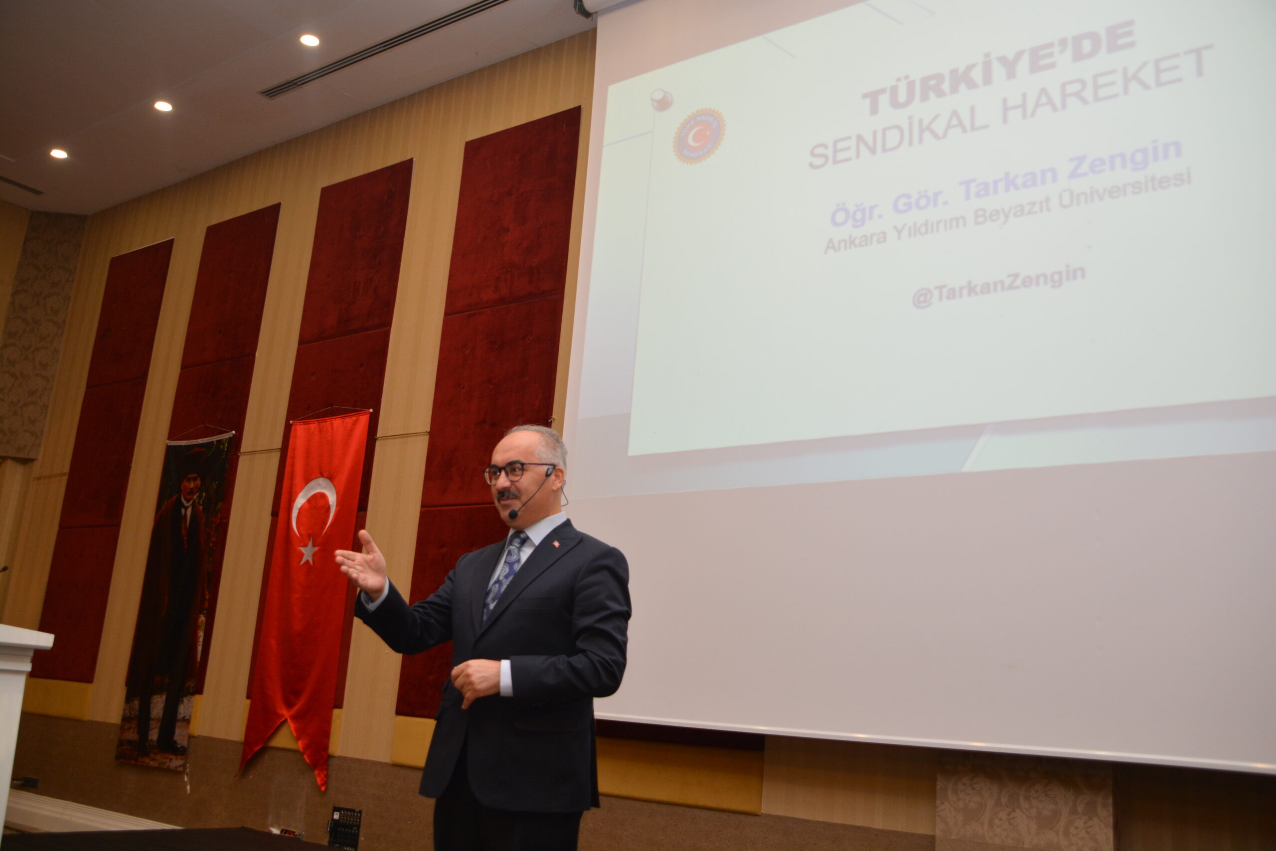Konuşmaların ardından Genel Başkan Danışmanımız Tarkan Zengin, Türkiye’de Sendikal Hareket konulu sunumunu gerçekleştirdi.
