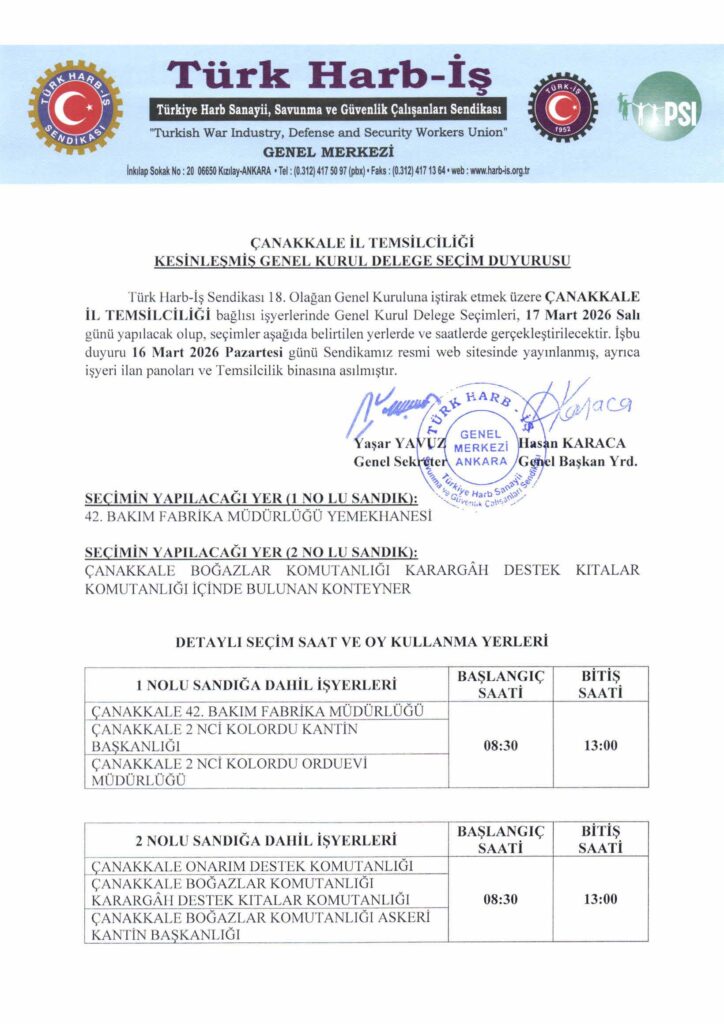 ÇANAKKALE İL TEMSİLCİLİĞİ KESİNLEŞMİŞ GENEL KURUL DELEGE SEÇİM DUYURUSU İLANI