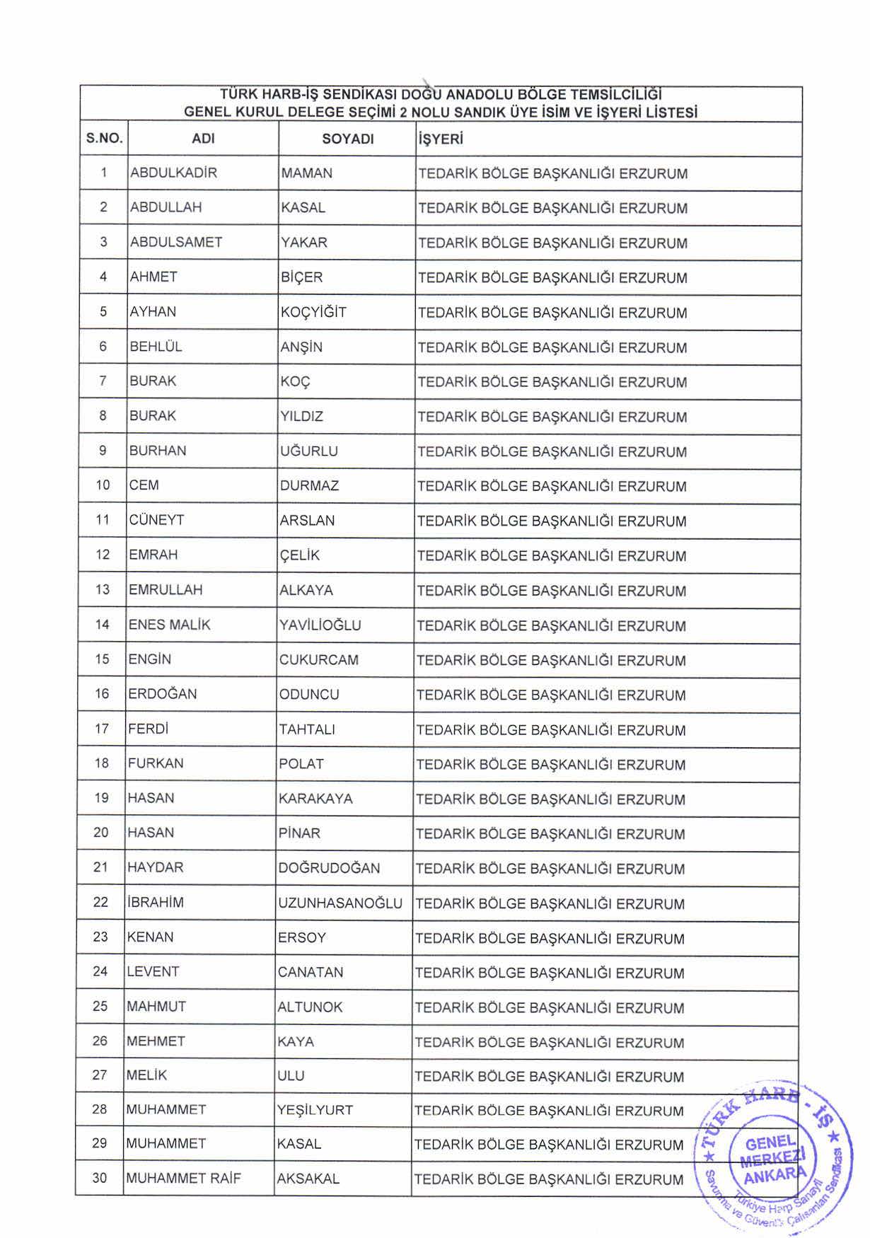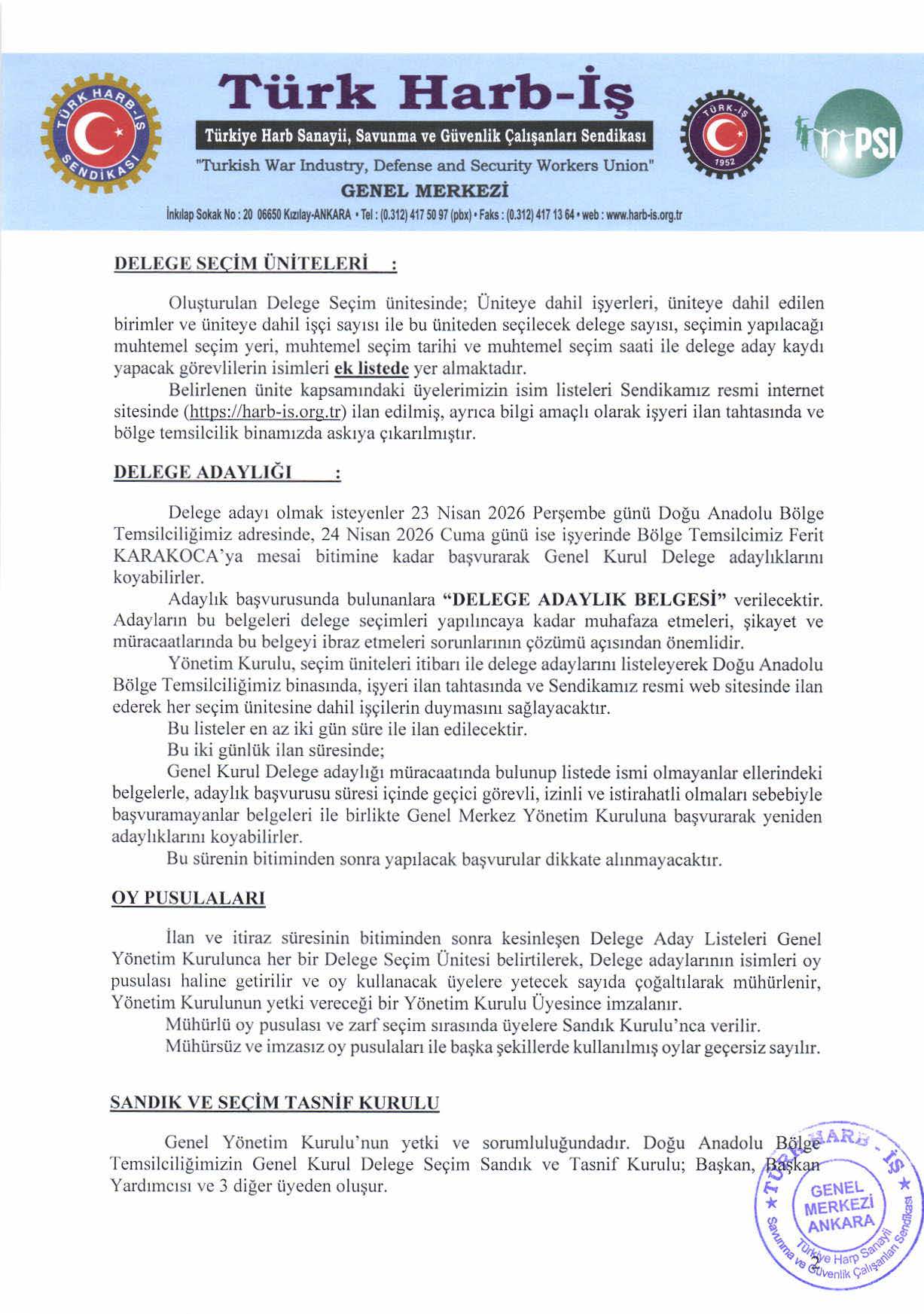 DOĞU ANADOLU BÖLGE TEMSİLCİLİĞİ GENEL KURUL DELEGE SEÇİM DUYURUSU İLANI