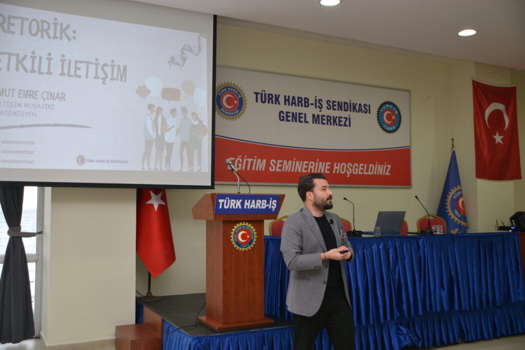 Konuşmaların ardından, Genel Başkan Danışmanımız Tarkan Zengin Türkiye’de Sendikal Hareket, Basın Müşavirimiz Umut Emre Çınar ise, Etkili İletişim konulu sunumlarını gerçekleştirdi.