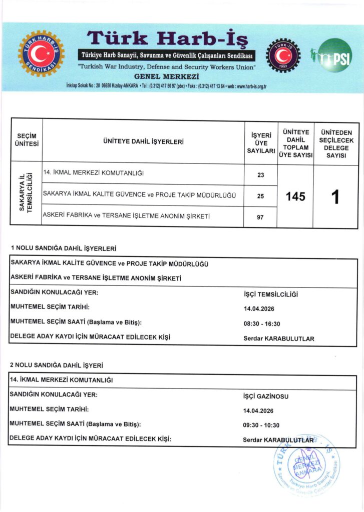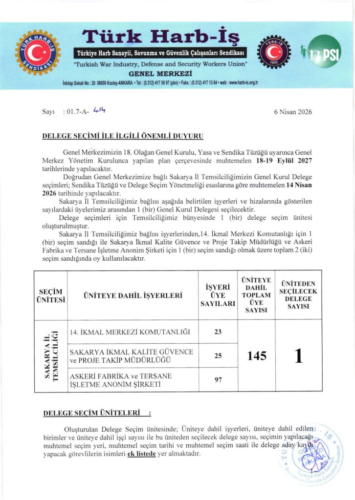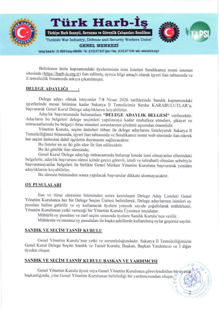 SAKARYA İL TEMSİLCİLİĞİ DELEGE SEÇİMİ İLE İLGİLİ İLAN