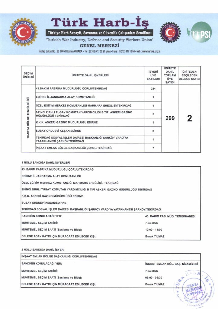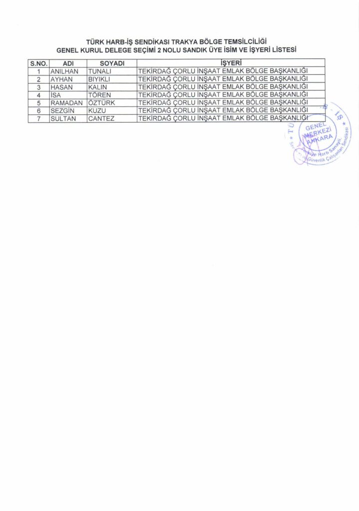 TRAKYA BÖLGE TEMSİLCİLİĞİ GENEL KURUL DELEGE SEÇİMLERİ İLE İLGİLİ İLAN