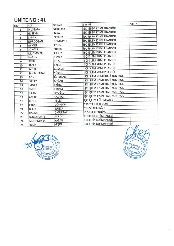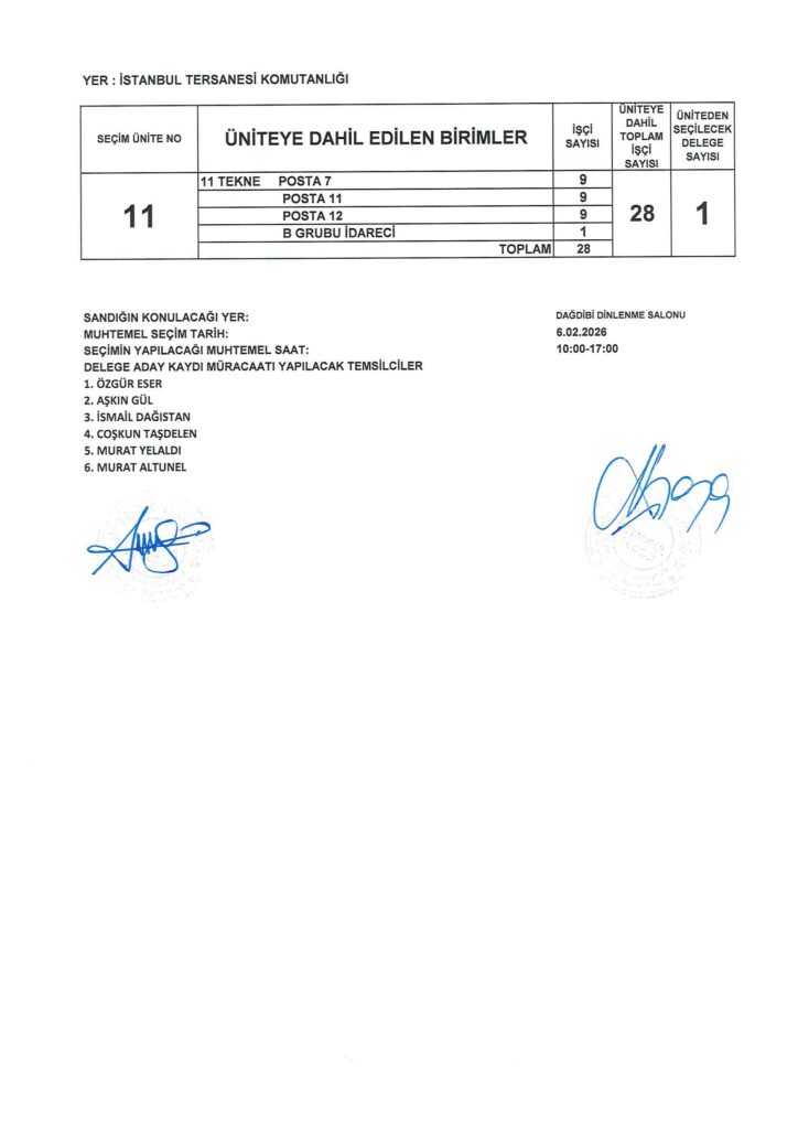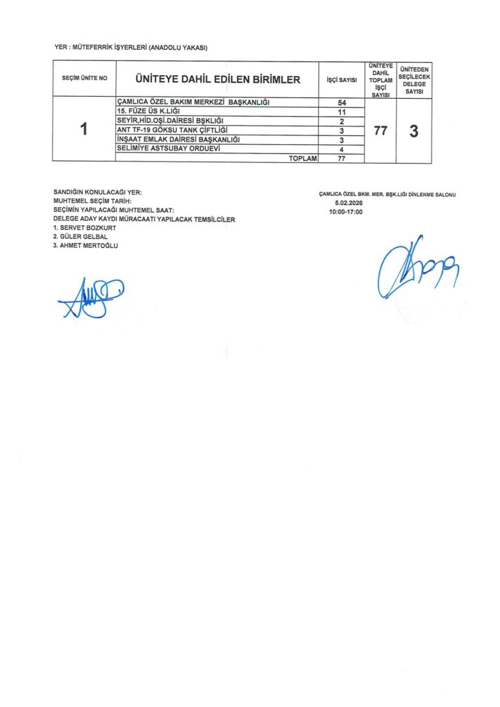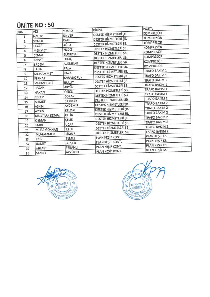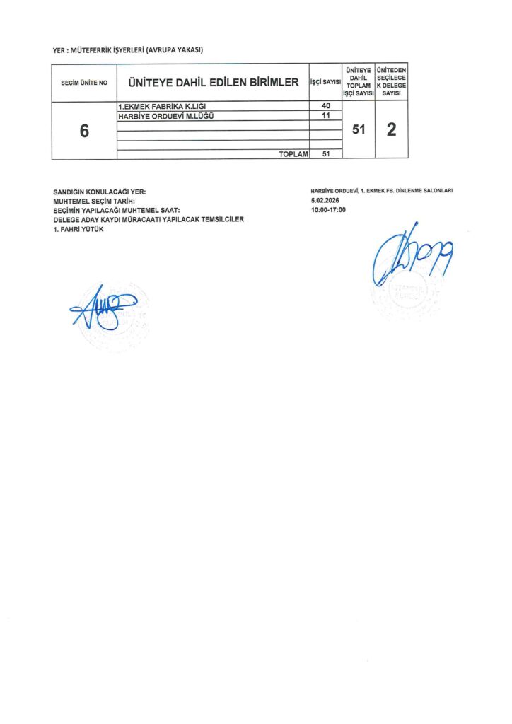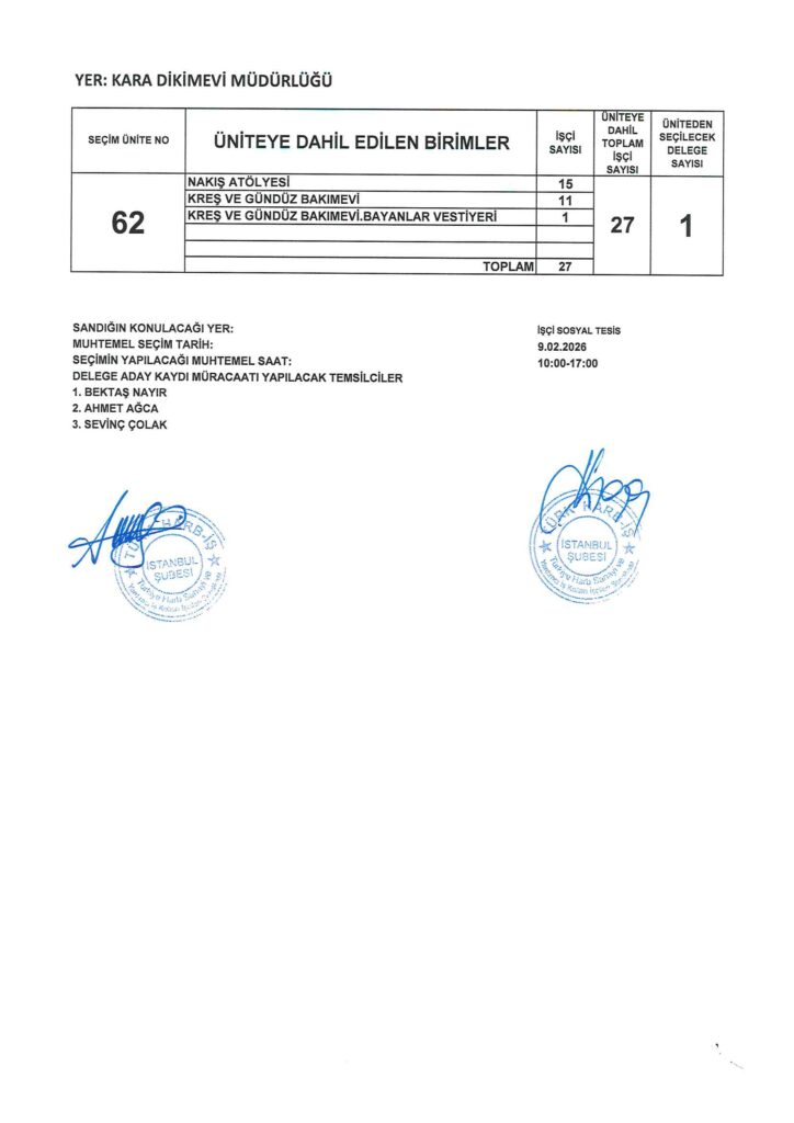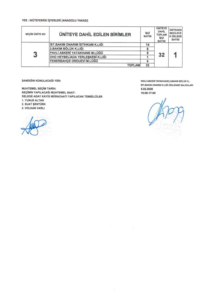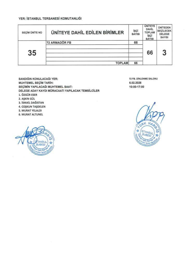 TÜRK HARB-İŞ SENDİKASI İSTANBUL ŞUBESİ DELEGE SEÇİMLERİNE YÖNELİK DUYURU VE ÜNİTE LİSTESİ