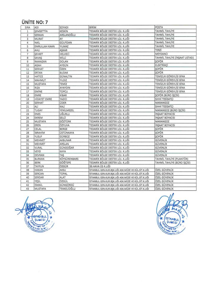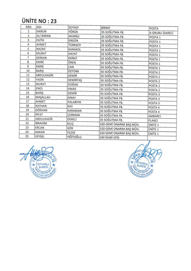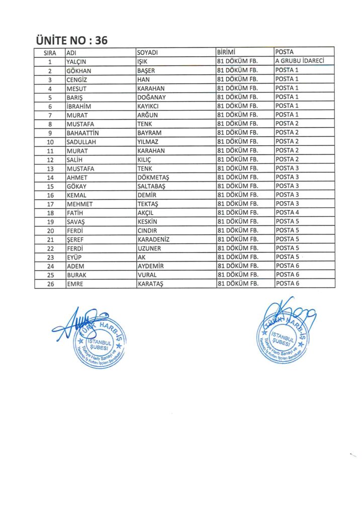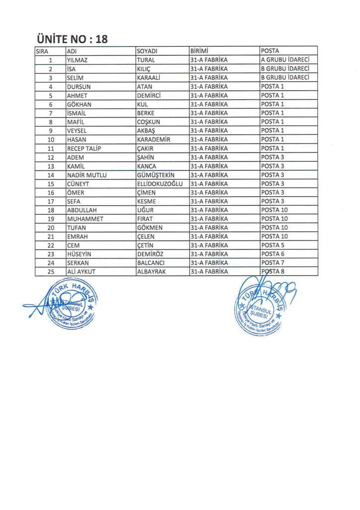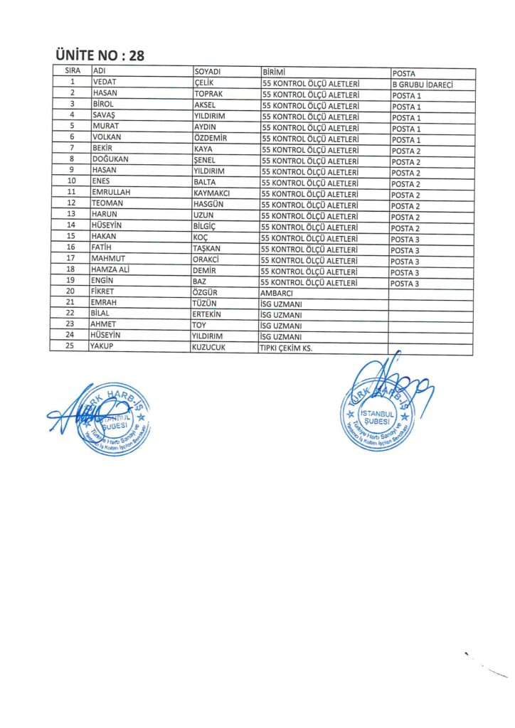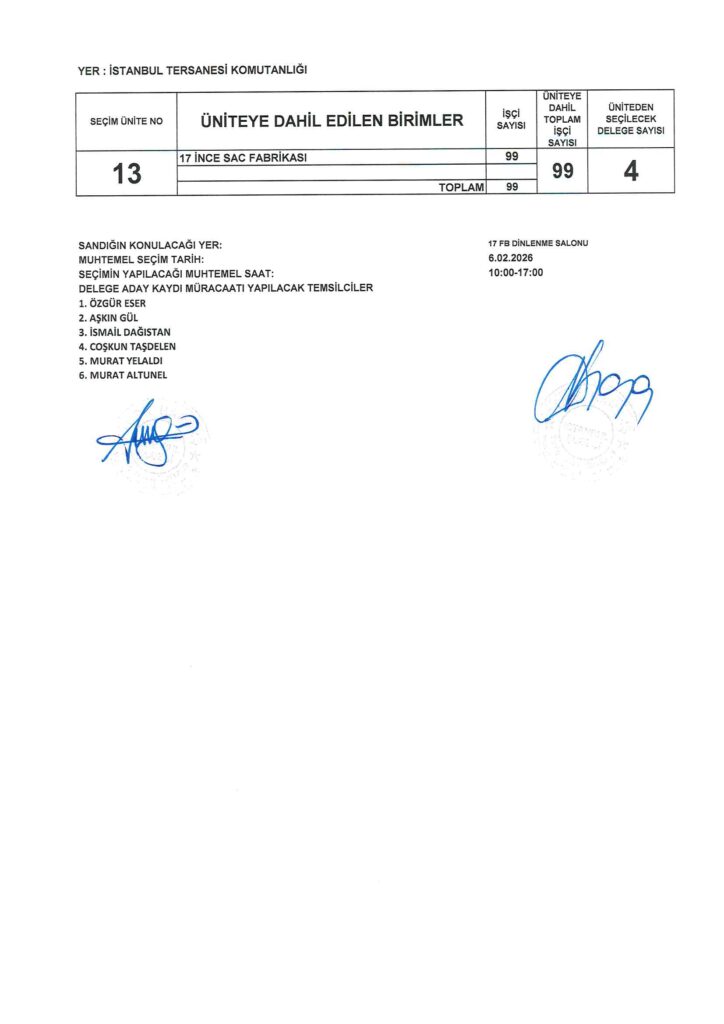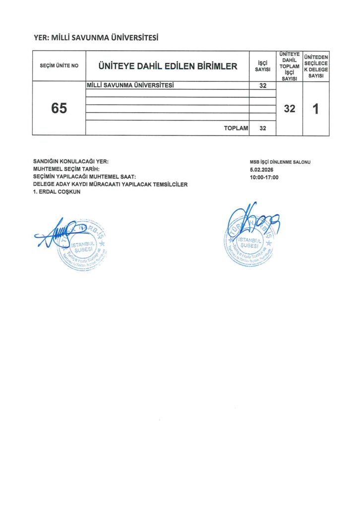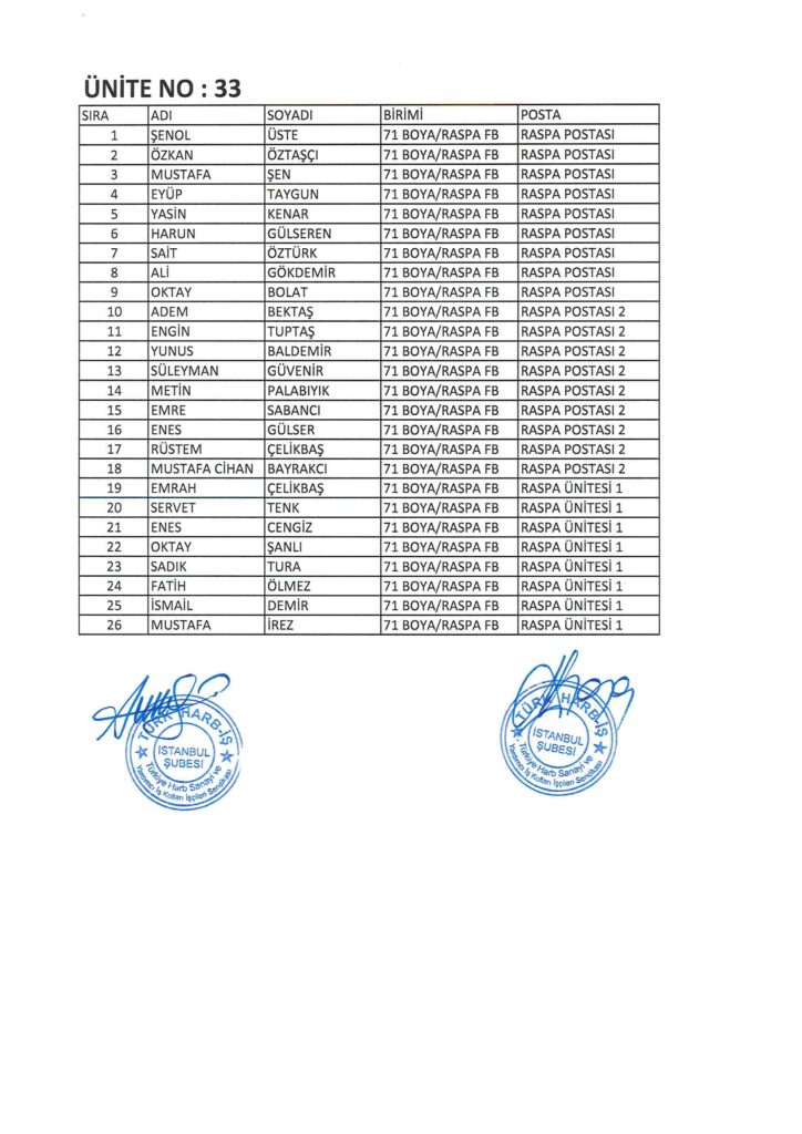 TÜRK HARB-İŞ SENDİKASI İSTANBUL ŞUBESİ DELEGE SEÇİMLERİNE YÖNELİK DUYURU VE ÜNİTE LİSTESİ