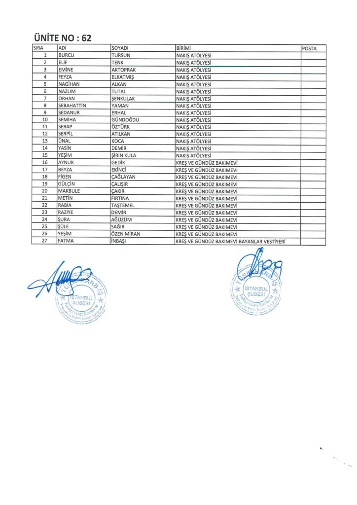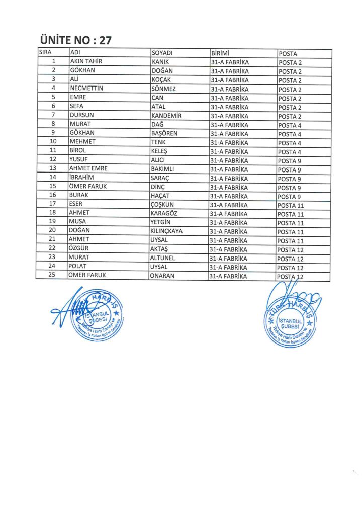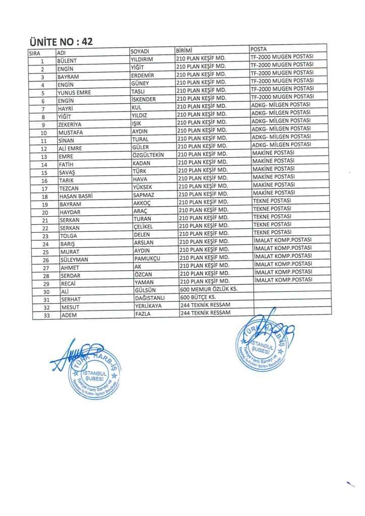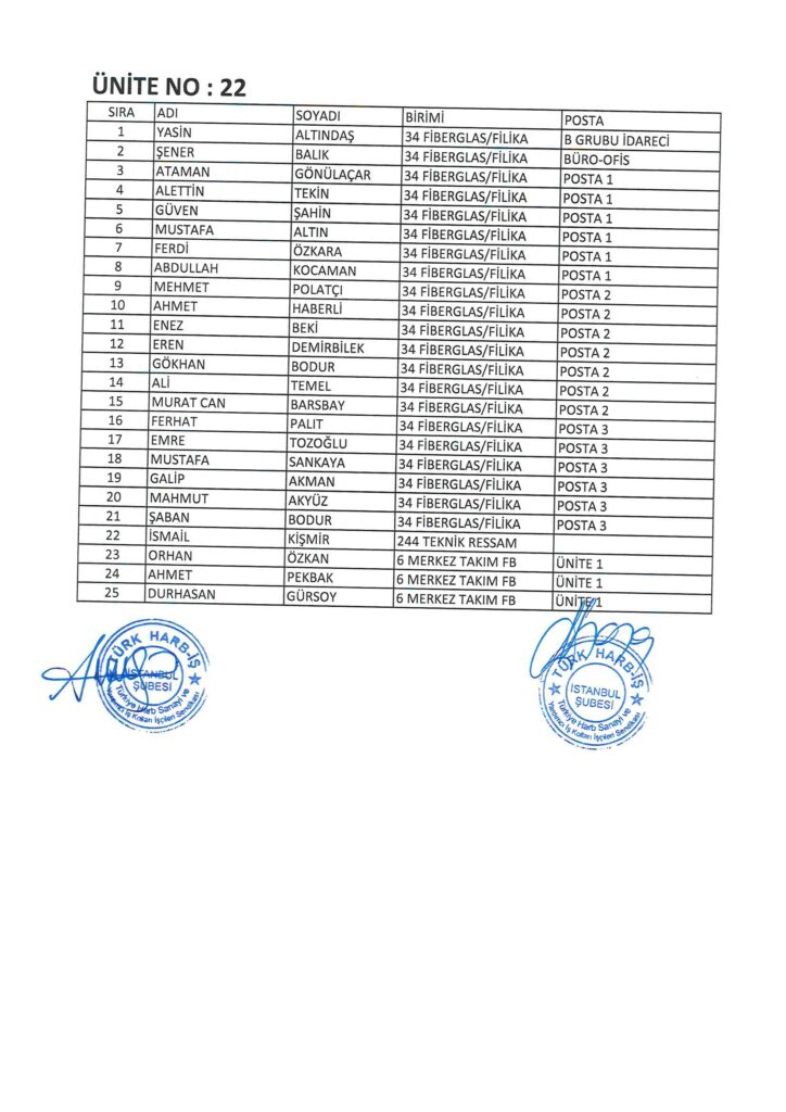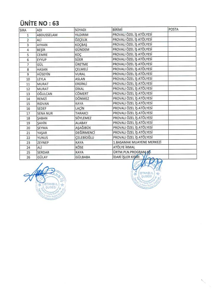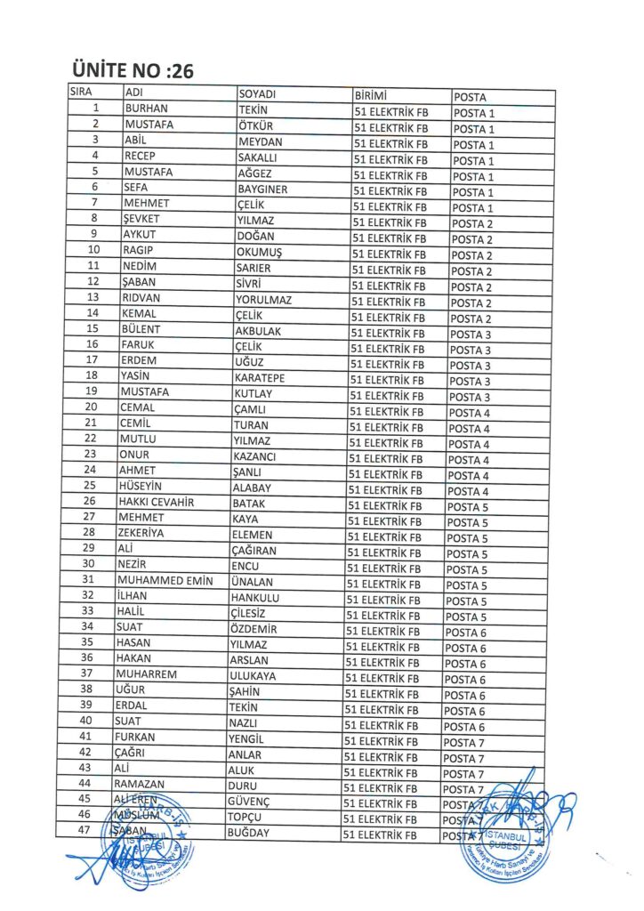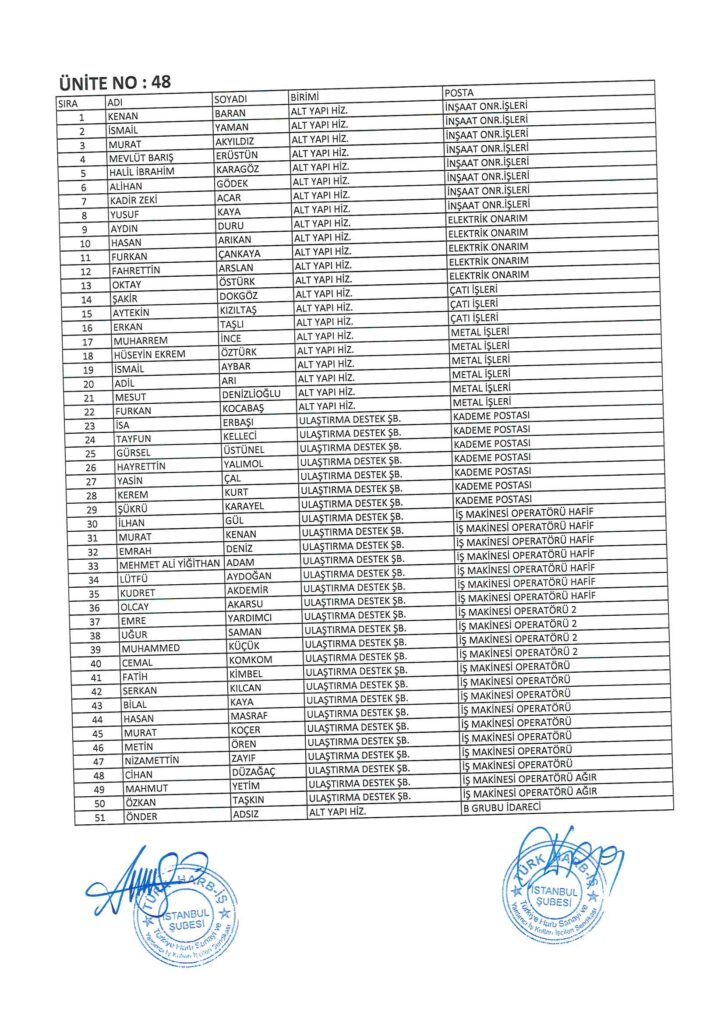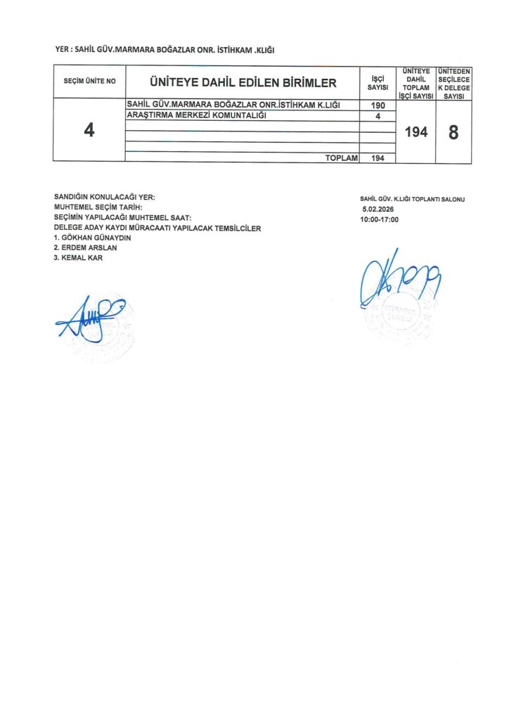 TÜRK HARB-İŞ SENDİKASI İSTANBUL ŞUBESİ DELEGE SEÇİMLERİNE YÖNELİK DUYURU VE ÜNİTE LİSTESİ