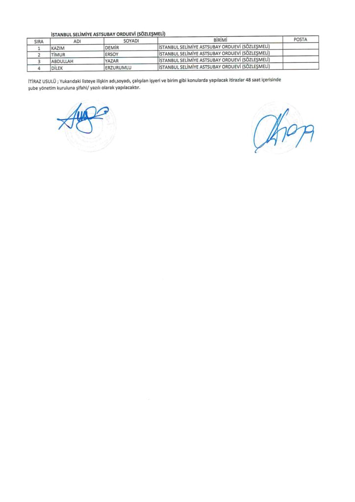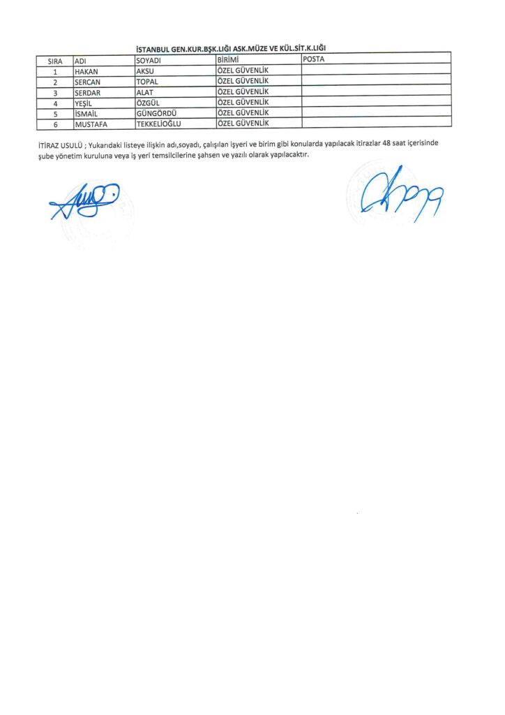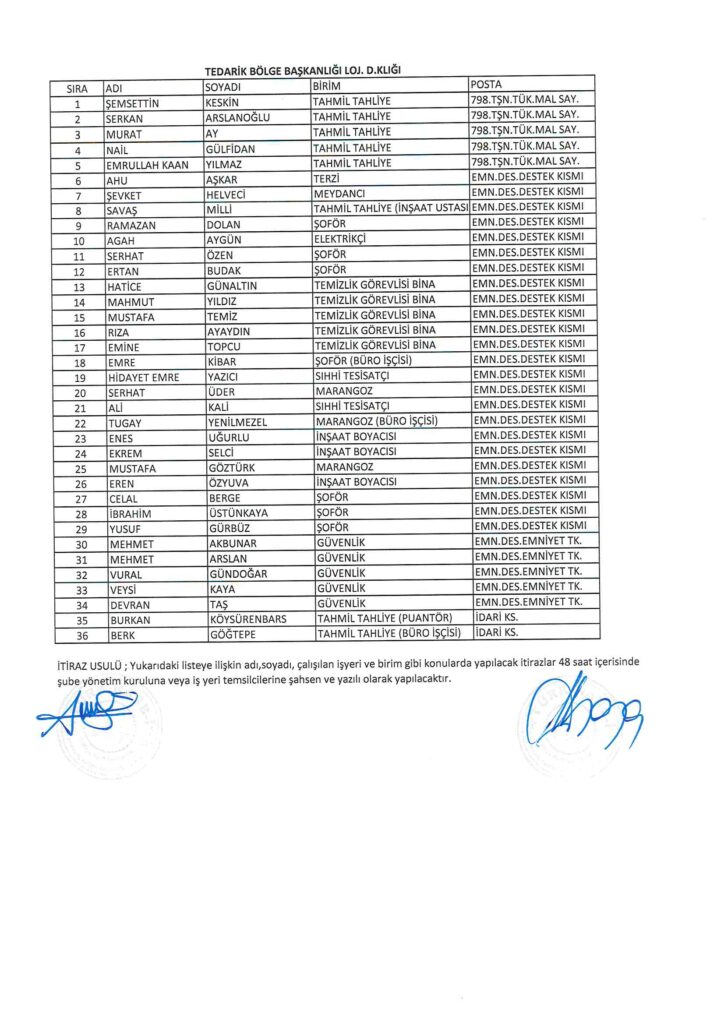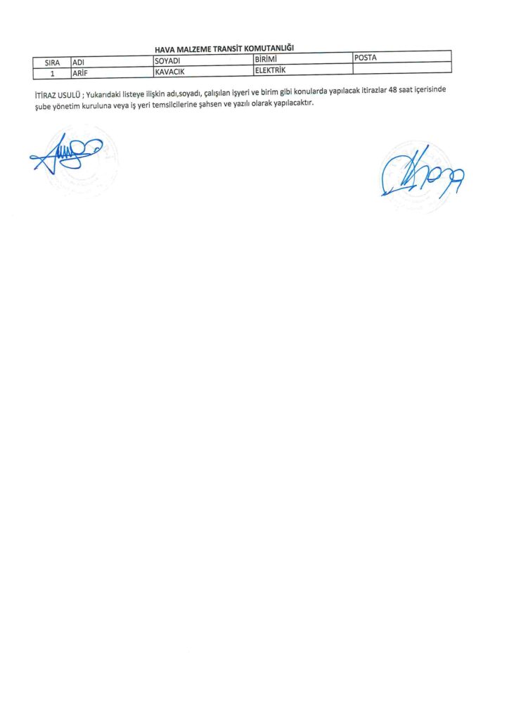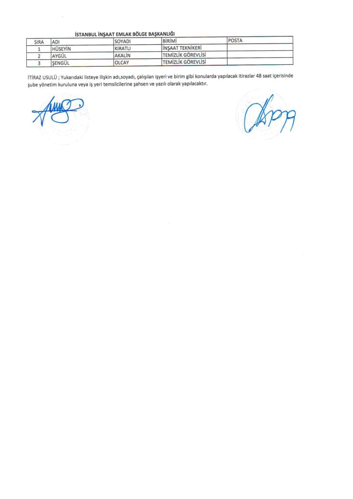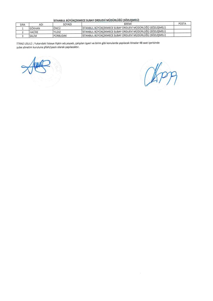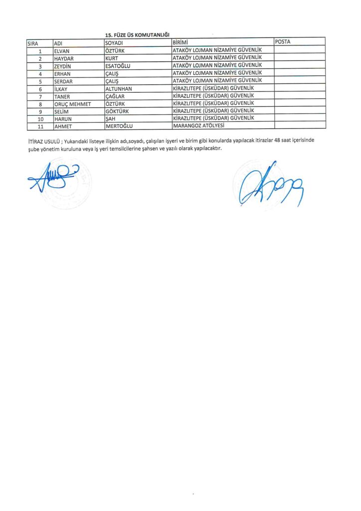 TÜRK HARB-İŞ SENDİKASI İSTANBUL ŞUBESİ DELEGE SEÇİMLERİNE YÖNELİK ÜYE LİSTESİ İLANI