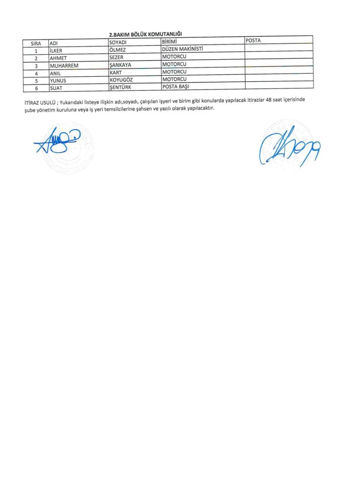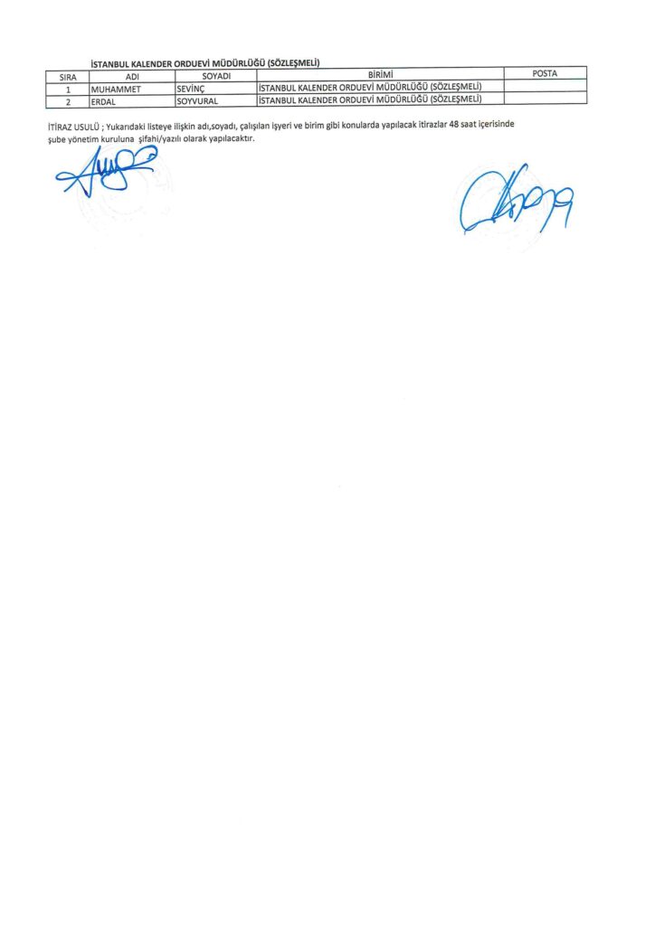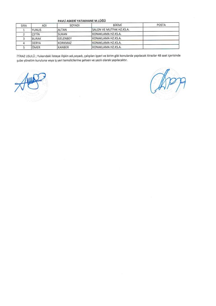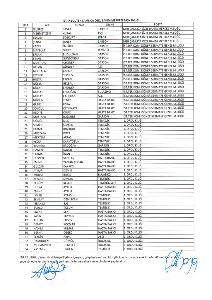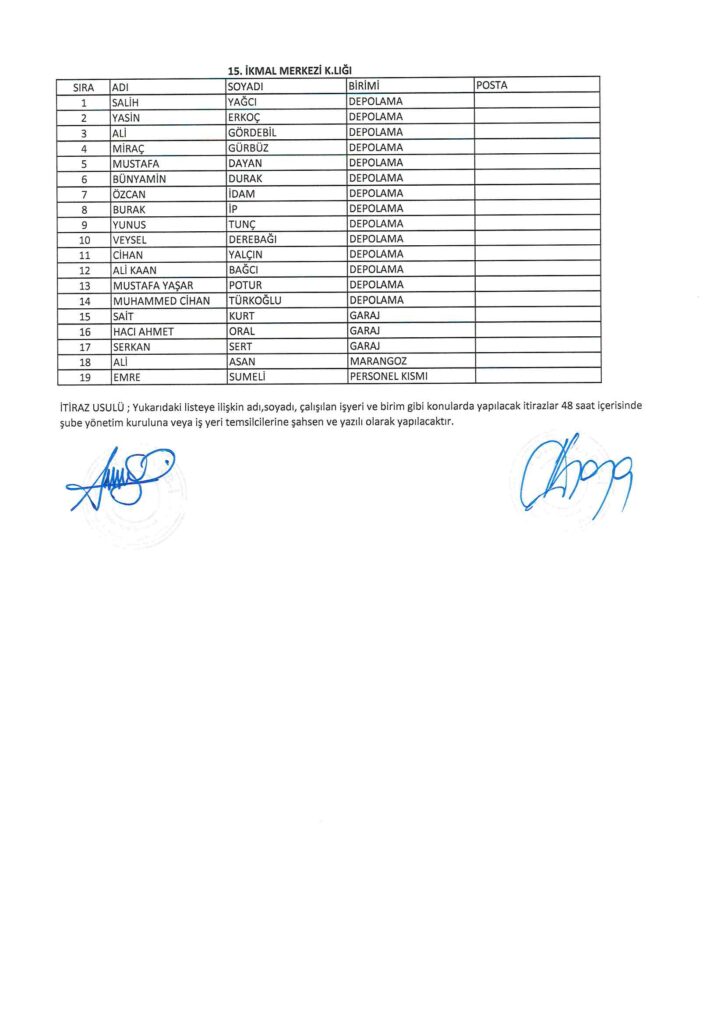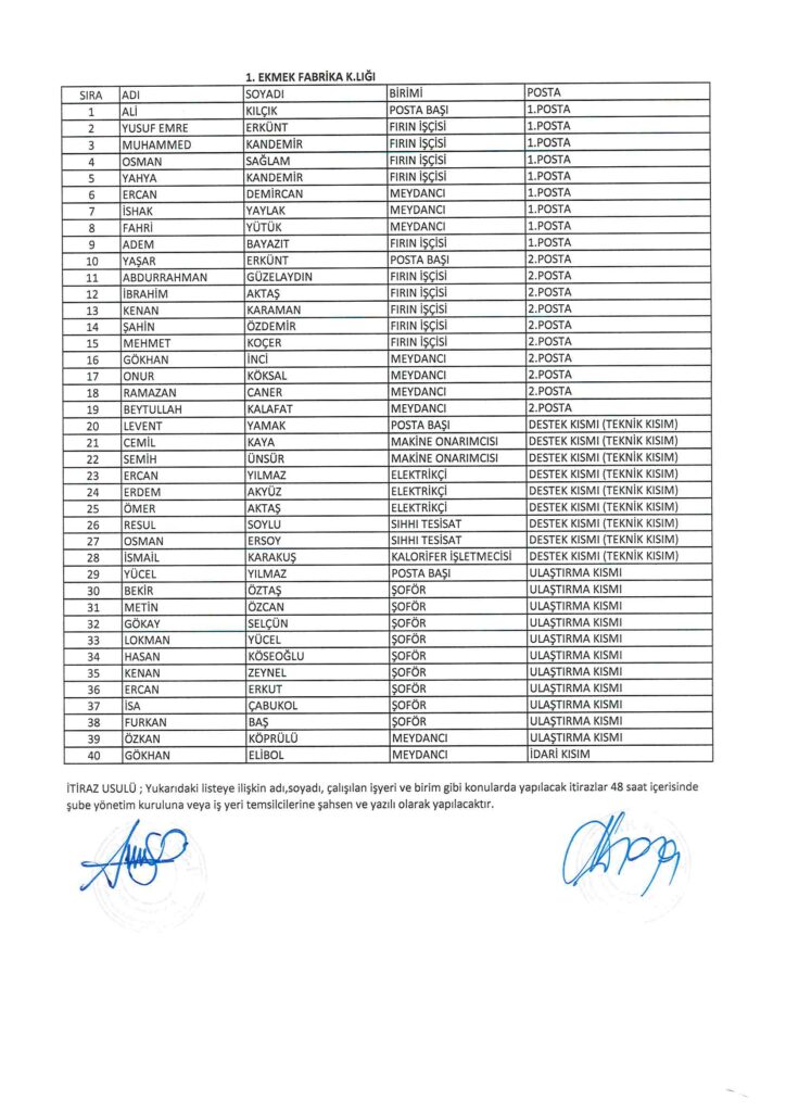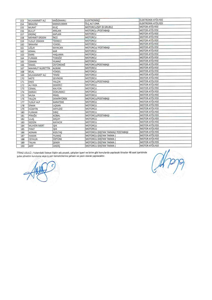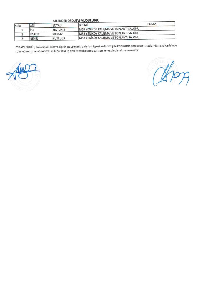 TÜRK HARB-İŞ SENDİKASI İSTANBUL ŞUBESİ DELEGE SEÇİMLERİNE YÖNELİK ÜYE LİSTESİ İLANI