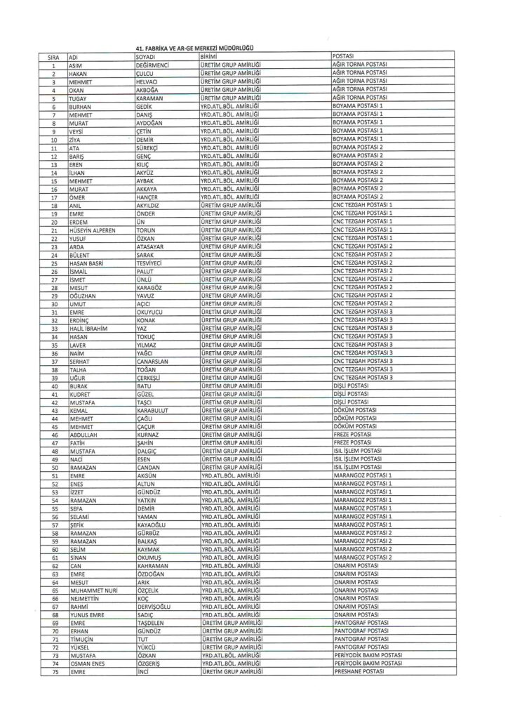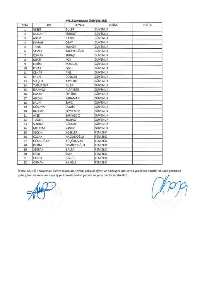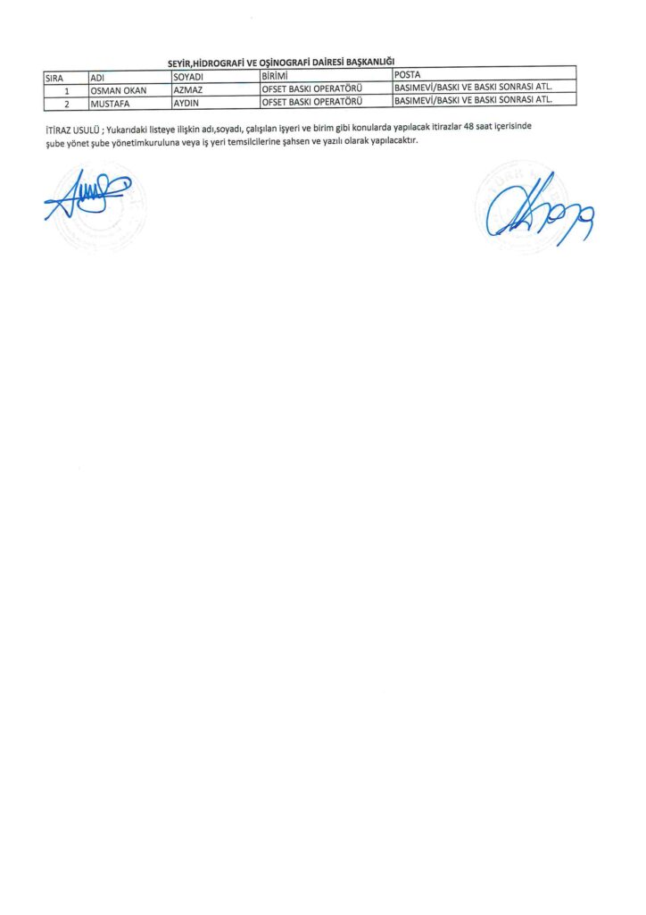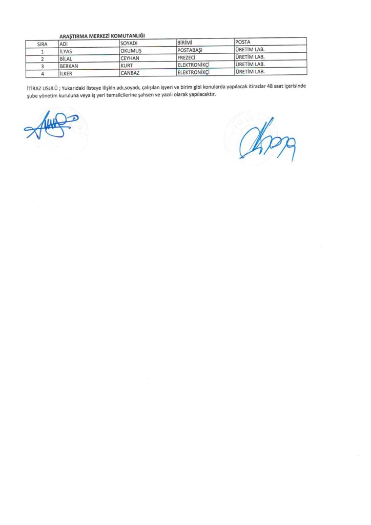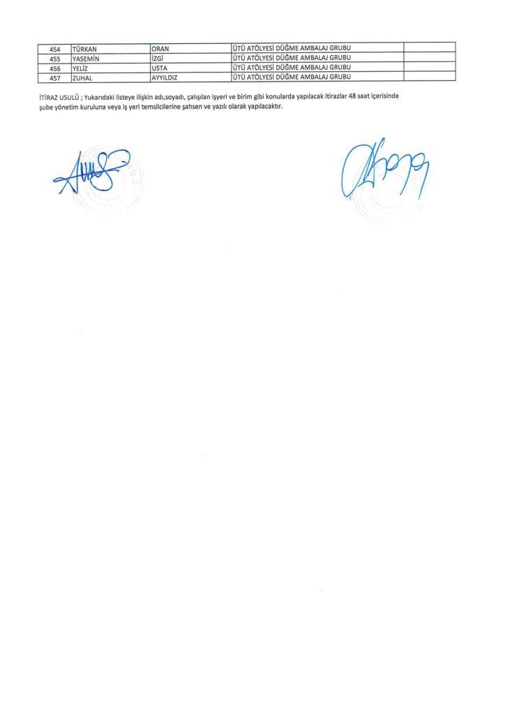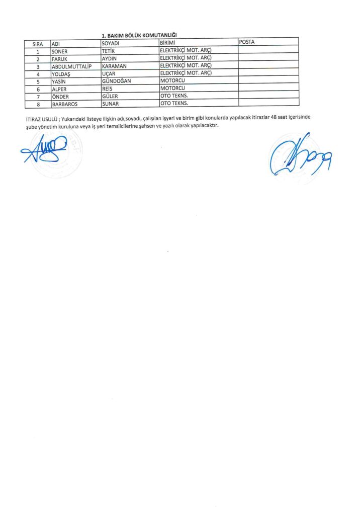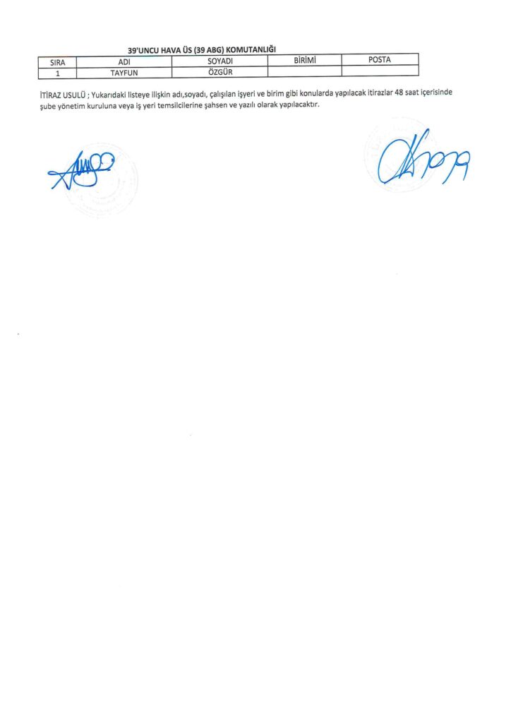 TÜRK HARB-İŞ SENDİKASI İSTANBUL ŞUBESİ DELEGE SEÇİMLERİNE YÖNELİK ÜYE LİSTESİ İLANI